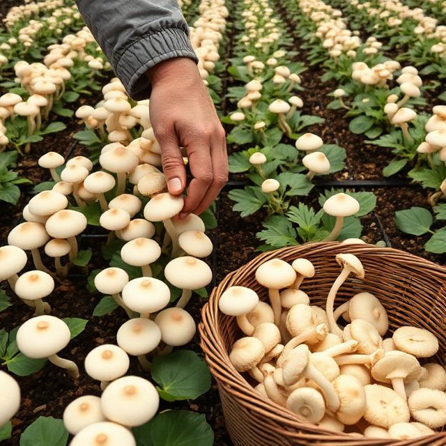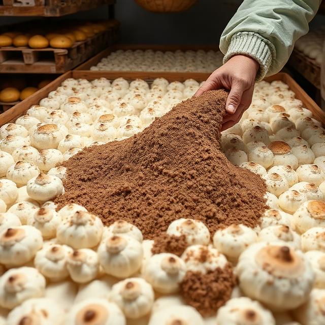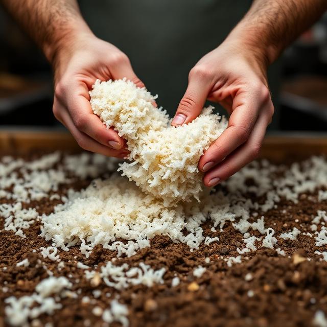 Premium quality spawn is carefully prepared and mixed with nutrient-rich compost.
