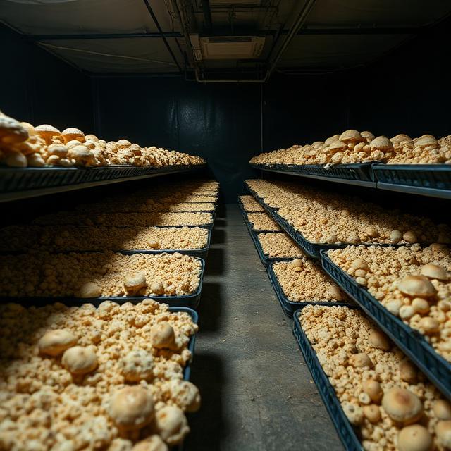 Maintained at optimal temperature and humidity for mycelium colonization.